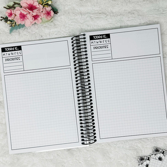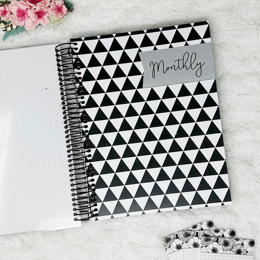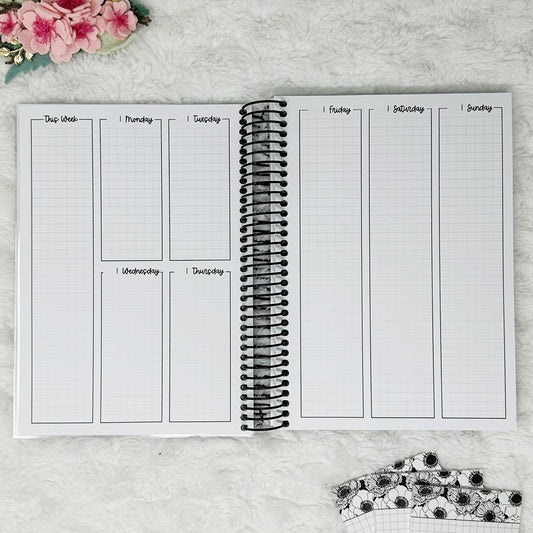 With our coil binding upgrade, you can add anywhere from 3-10 inserts to a black or silver coil, customize your own cover and I will put all the pieces together for you!
