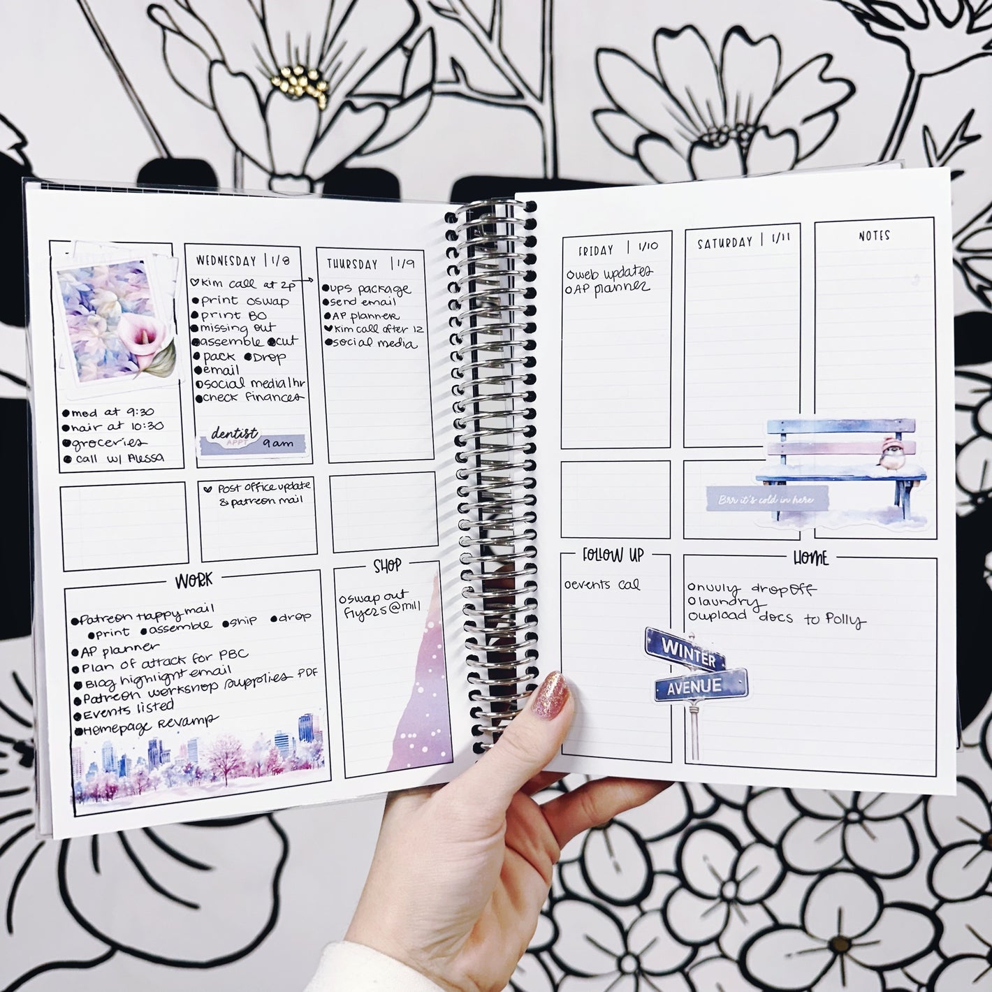 I don’t bring my work planner home and if you don’t either, Marie is the one. This vertical weekly planner covers Monday through Friday only and gives you options for how you want to space your weeks.