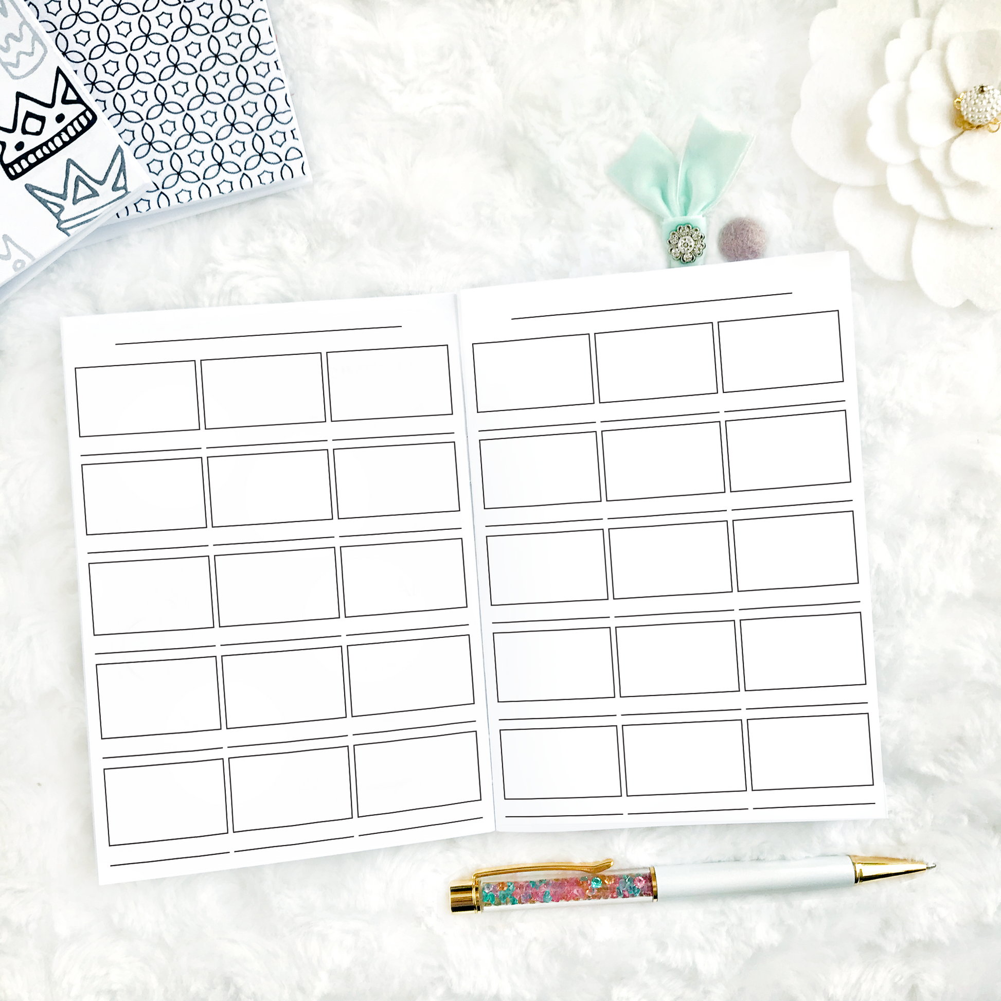 Description: Take your collection game to the next level with our swatch book insert designed to keep track of pens, paints, stickers, and more!