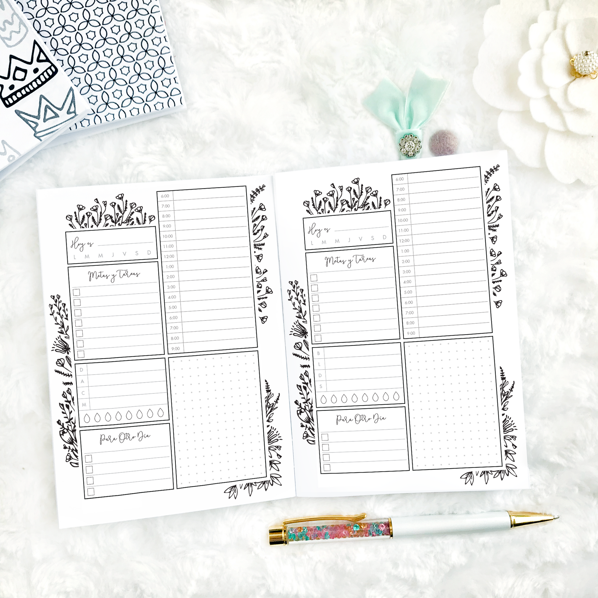 Description: Crush your daily to-do list. Track your meals, hydration, hourly schedule, goals, and tasks for the day amongst whimsical botanical artwork.