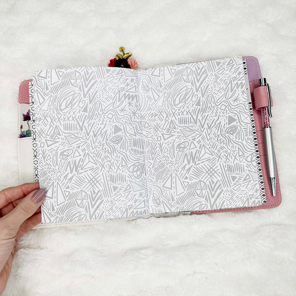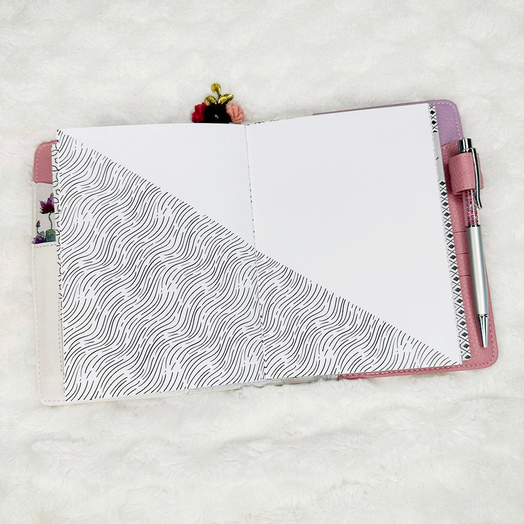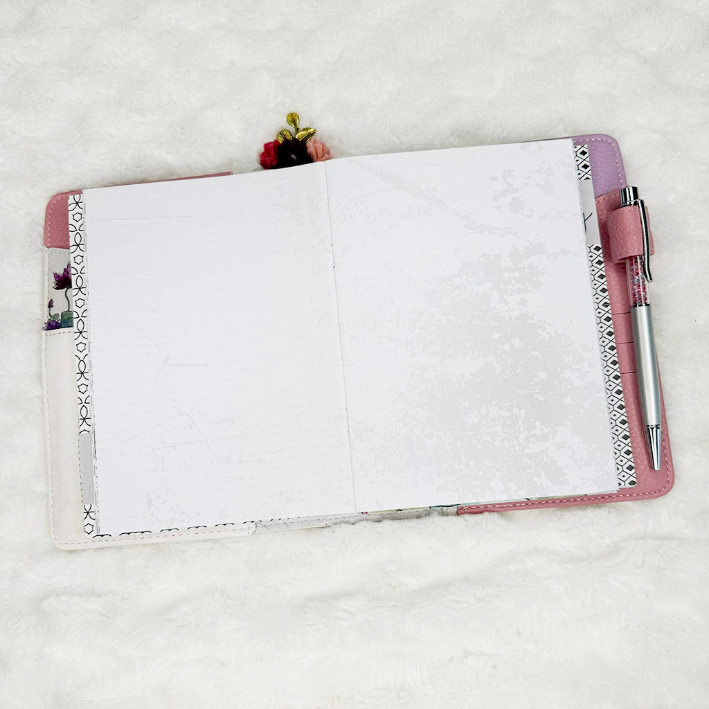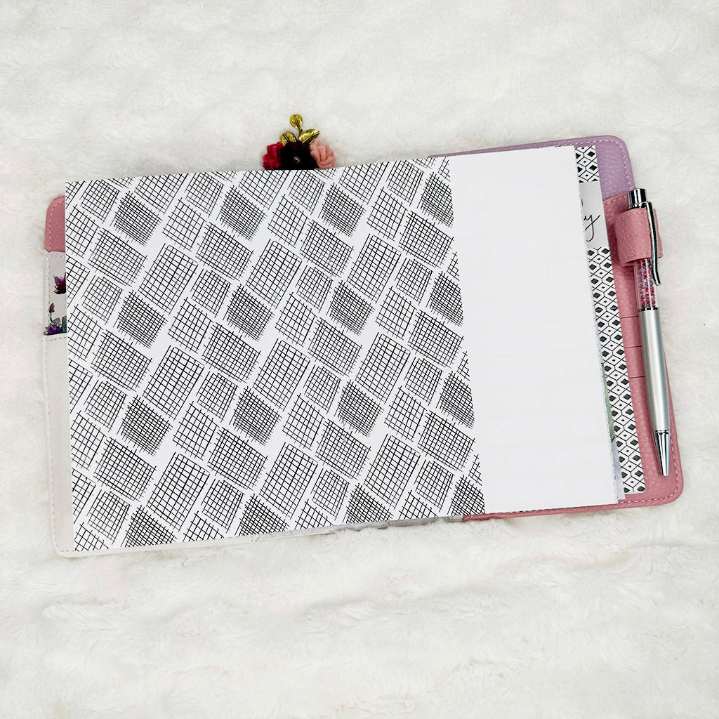 All inserts are cut, punched and bound by hand with love. This means binding and holes may not align exactly from one insert to the next. You will not notice such small variance once inserts are placed your planner.