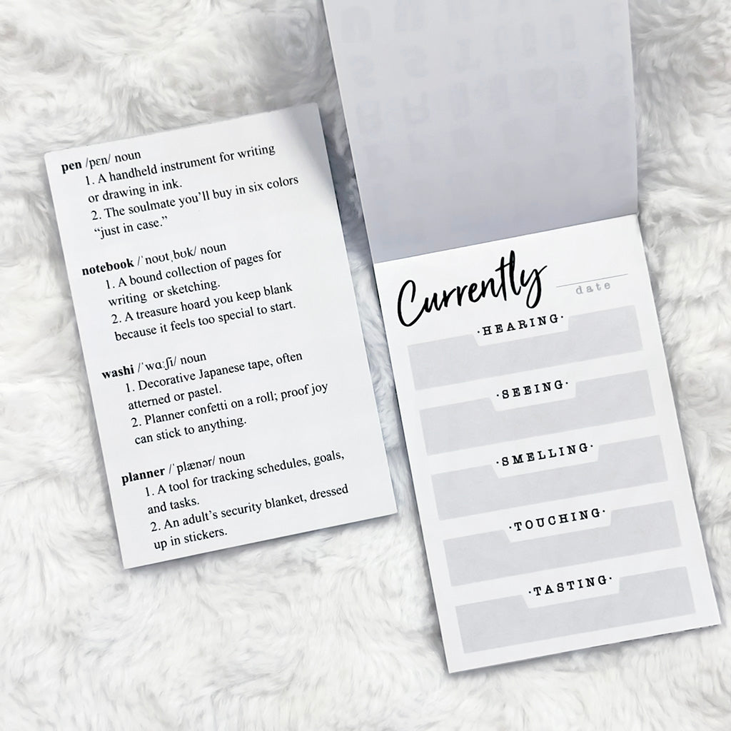 This listing is for physical, printed notepad. Notepads come blank with no accessories or decorations.