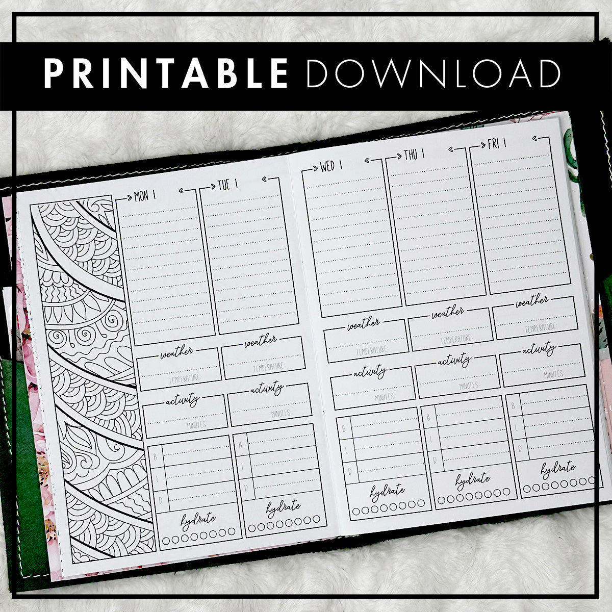 Description: Support your mental and emotional health with a planner that merges detailed tracking of your wellness, inspiring prompts, and relaxing floral-themed coloring pages.
