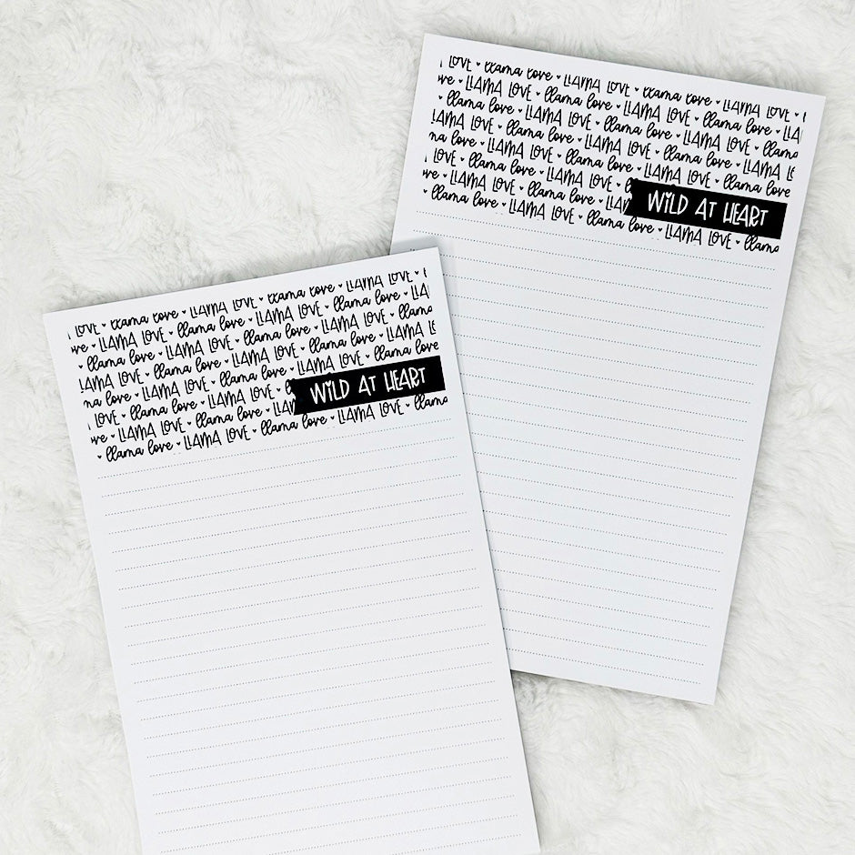 Notepads include 20 sheets, sized 5.5 x 8.5". They are single sided, with design on the front and a blank back side.