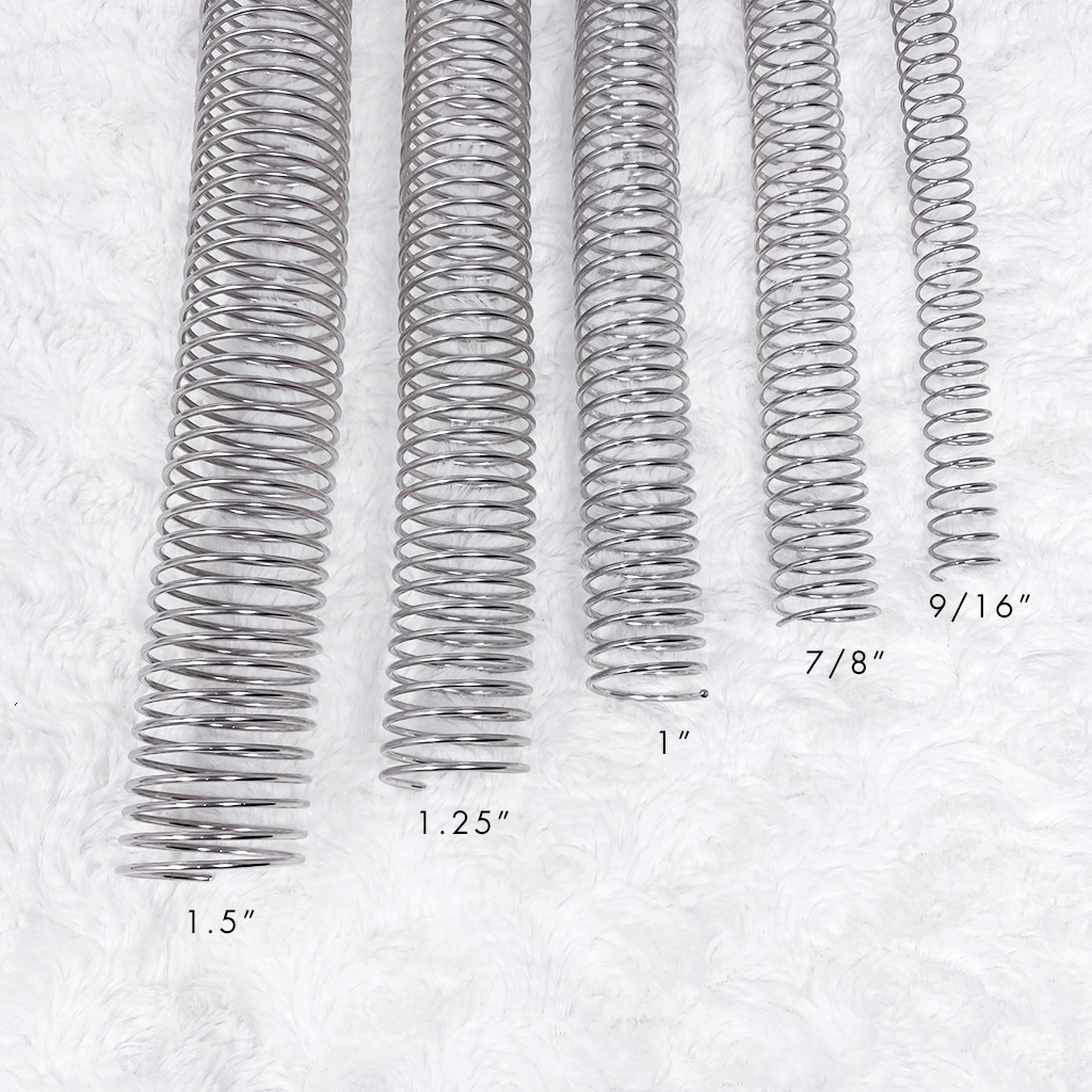 - Coils are available in five sizes, in a black metal and silver aluminum finish (the aluminum coil is slightly thicker than the metal coil, but both are very durable)!