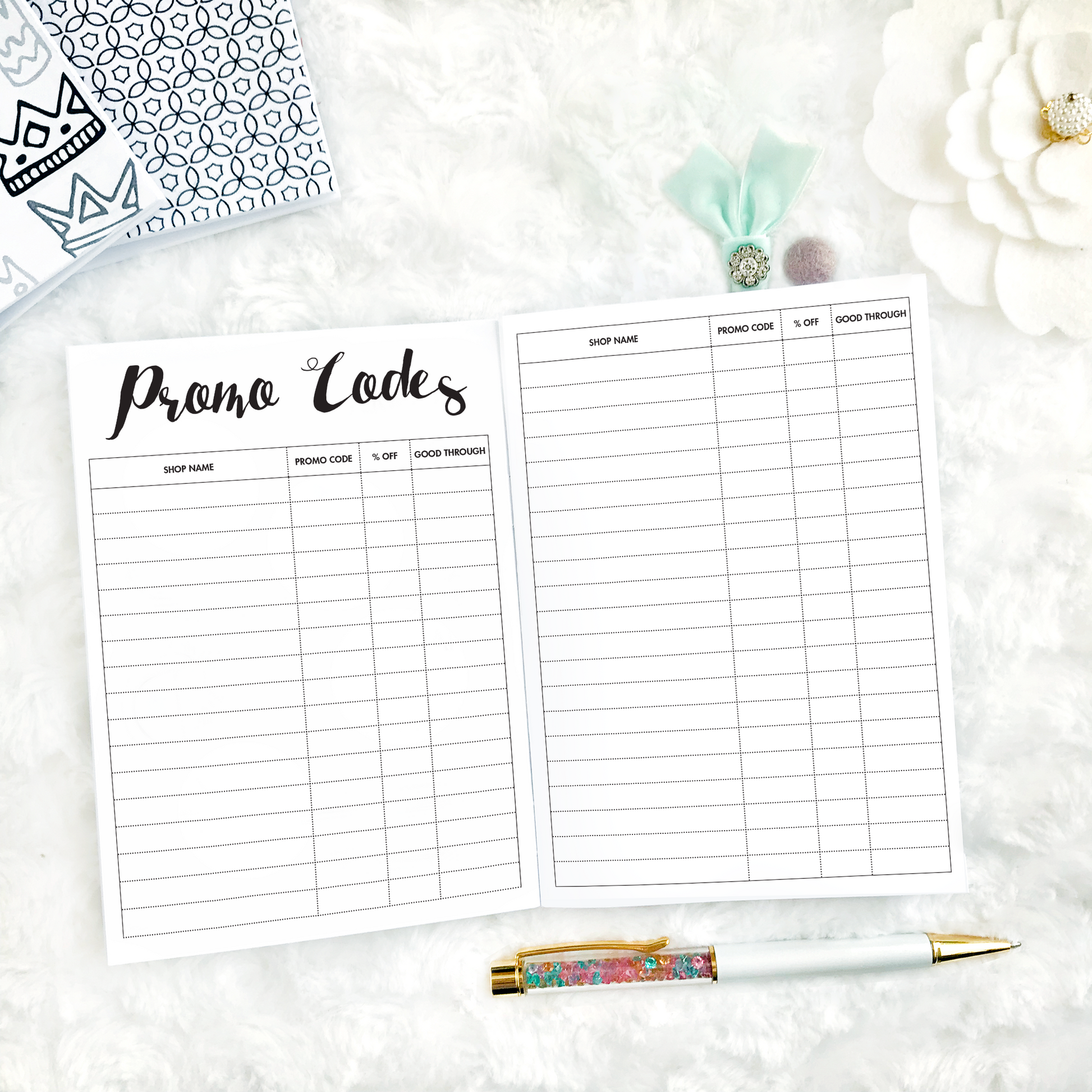 Description: Incorporate the power of planning to stay on top of your online purchases by tracking orders and promo codes in our funtional planner insert.