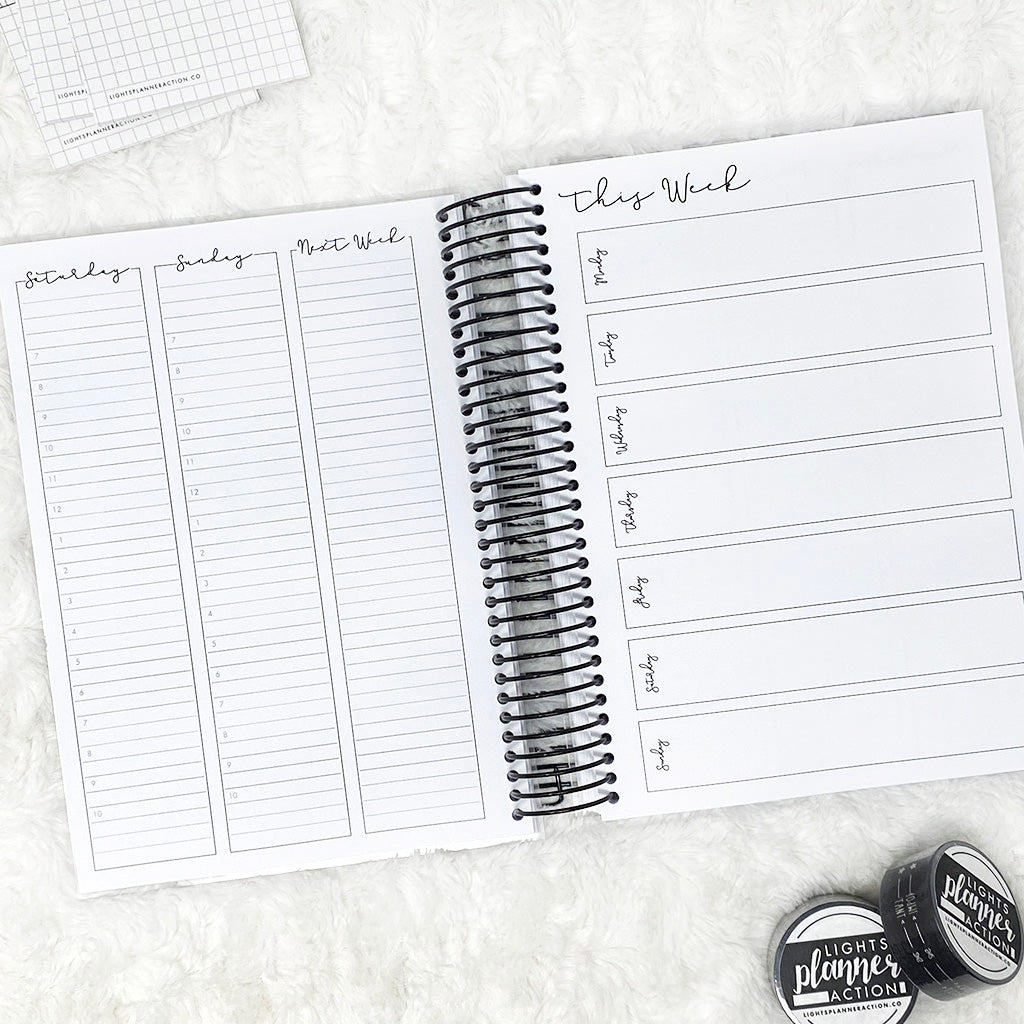 This listing is for physical, printed coil bound planner. It is predesigned and not customizable. If you would like to create your own custom coil planner, check out my Custom Coil Upgrade page!