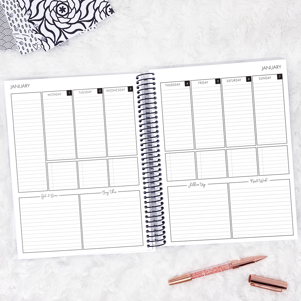 This listing is for physical, printed coil bound planner. It is predesigned and not customizable. If you would like to create your own custom coil planner, check out my Custom Coil Upgrade page!