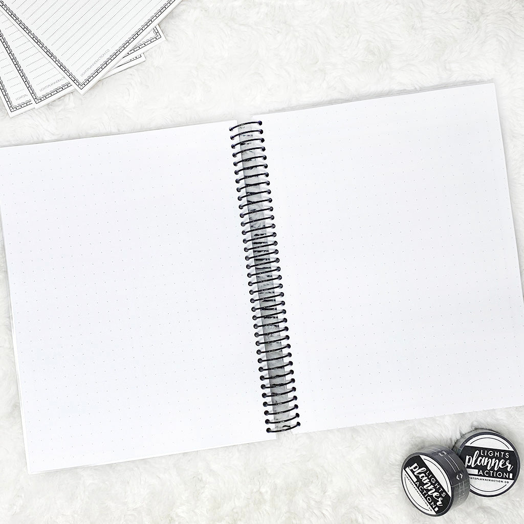 All planners are cut, punched and bound by hand with love. This means binding and holes may not align exactly from one page to the next. You will not notice such small variance once pages are placed on your coil.