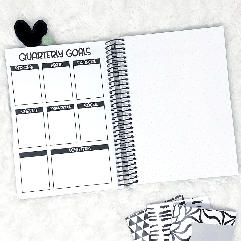- Quarterly coiled planner equipped with Monthly, Weekly and Daily planning pages