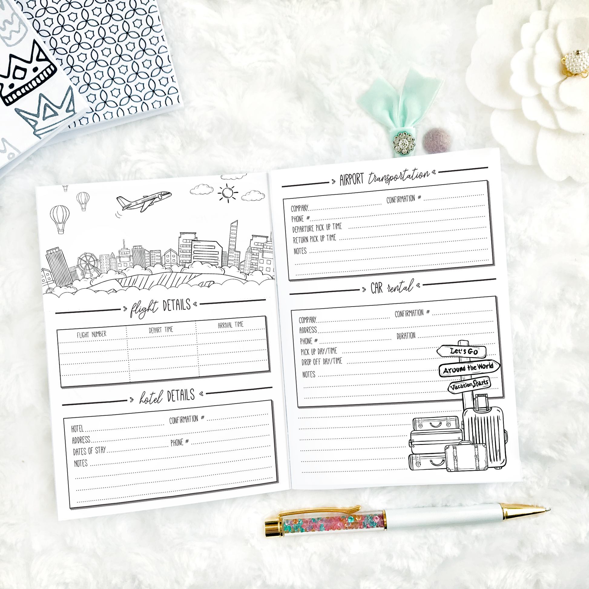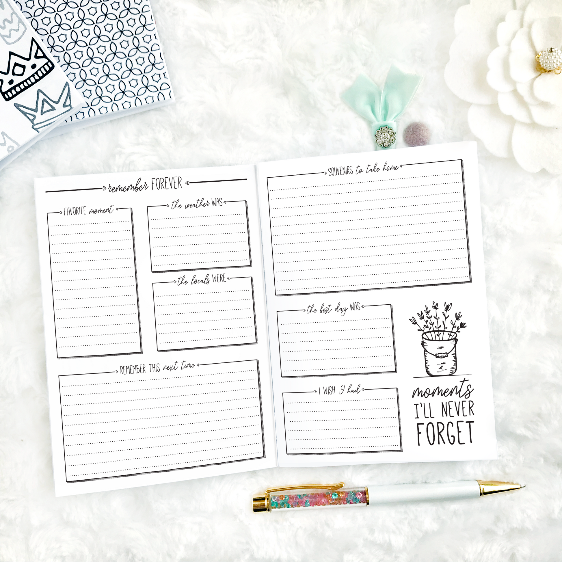 - Chronicle your travel memories and adventures with daily journaling pages and post-trip reflection pages for memory keeping