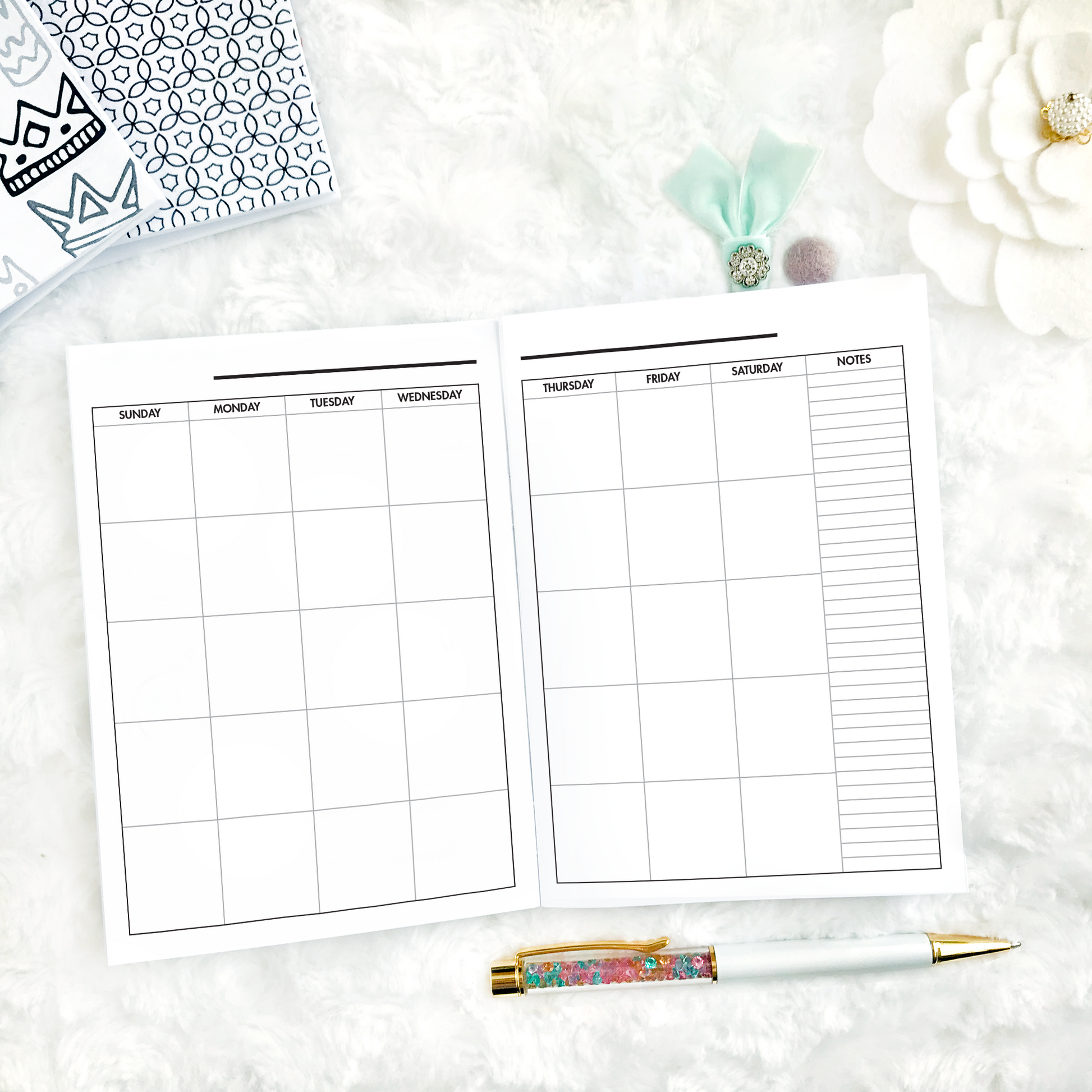Description: Plan out your month with ease and get an in-depth look at your month ahead with The Rachel Monthly, featuring ample space for notes, scheduling, and tracking.
