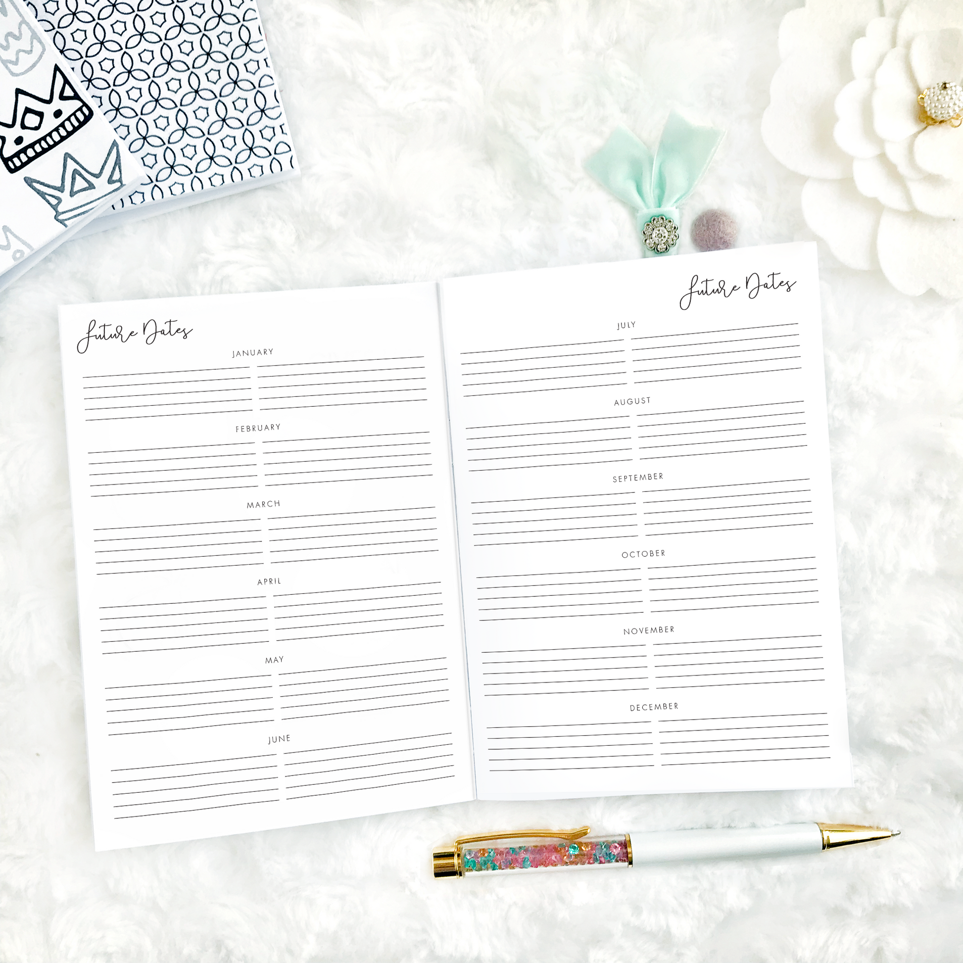 Description: Schedule and track your plans for the year in a monthly layout. Features a clean layout with a lined Notes column and space to plan each day of your month.